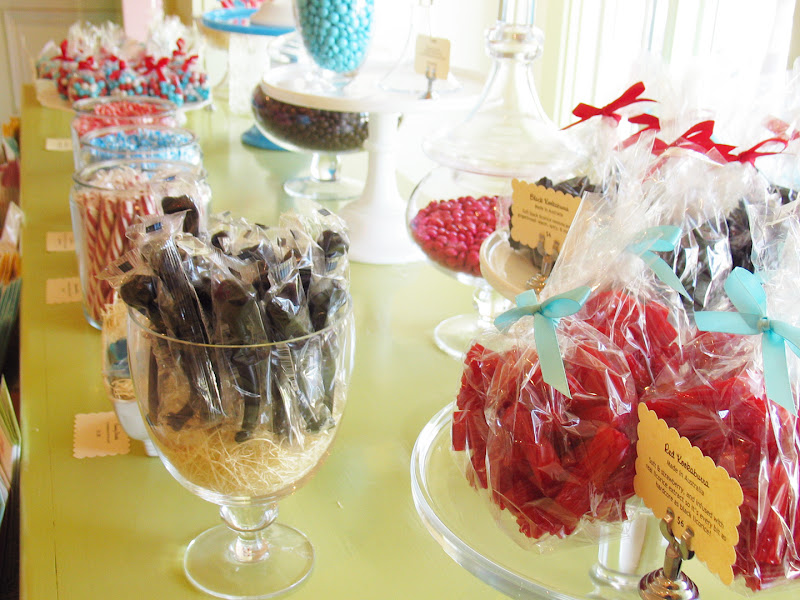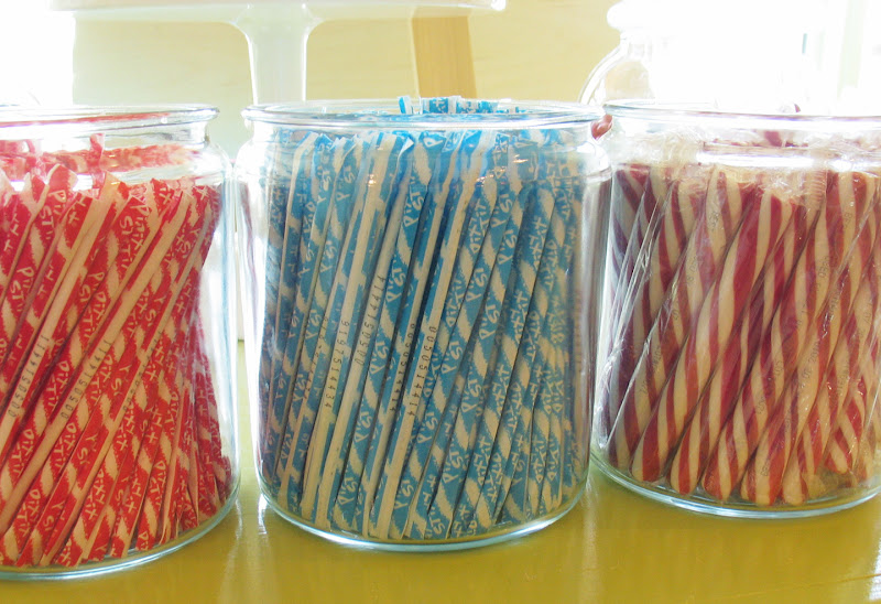 Licorice Pipes, Wax Moustaches, Red & Black Licorice, Pixi Stix giant & tiny, Peppermint Sticks, Saltwater Taffy, Sixlets, & much more to come.